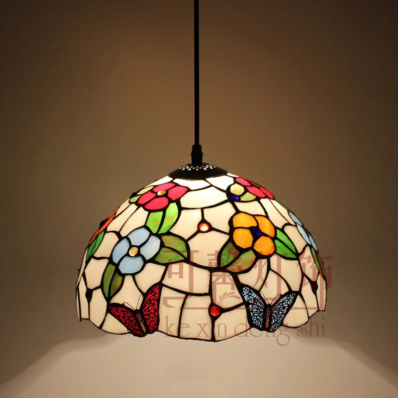 Buy Now 12 Inch Flesh Country Flowers butterfly Tiffany pendant light Stained Glass Lamp for Bedroom E27 110-240V before OUTSTOCKDATE and You will save US $94.50 today, this content build at : 3/22/2020 prices can change depending on the provider and time